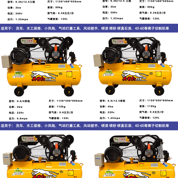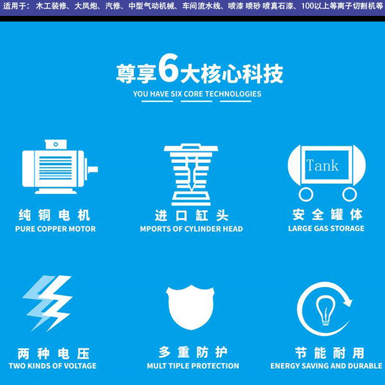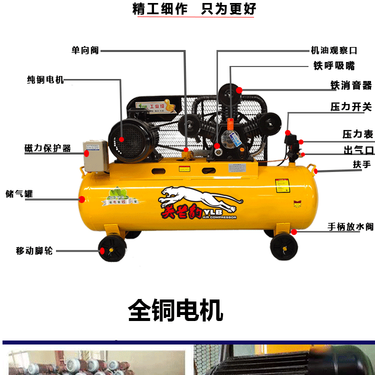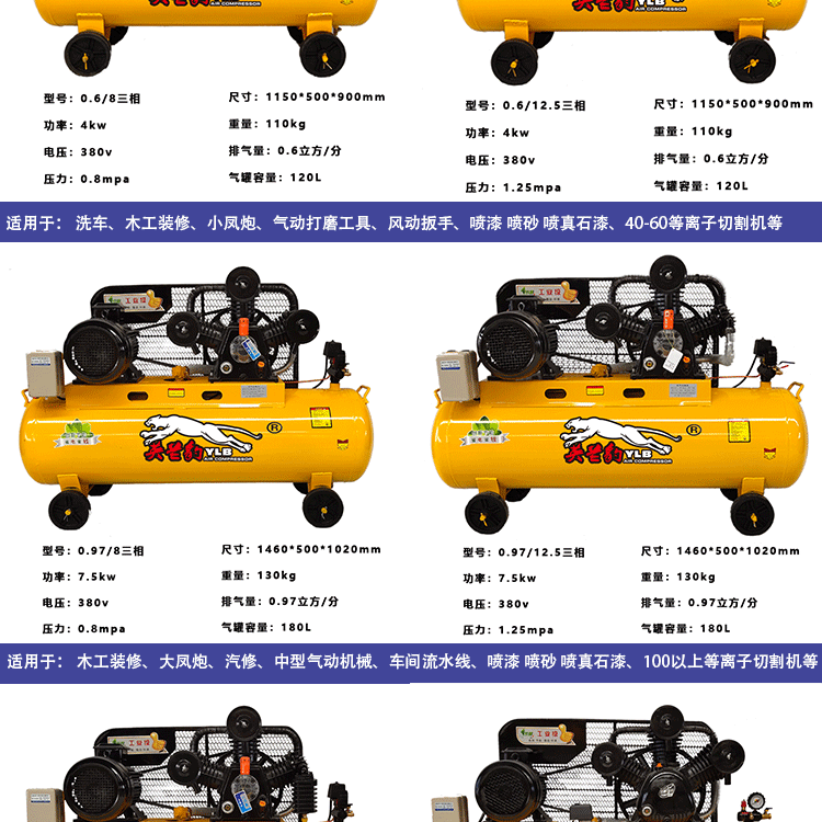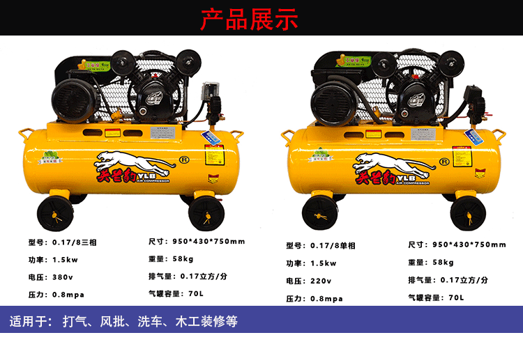 使用注意事項(xiàng):1 .海拔高度不超過2000米、空氣溫度不超過40℃的清潔、干燥、無腐蝕的氣體環(huán)境2 .壓縮機(jī)電源根據(jù)規(guī)定和用戶需要、可采用220V或380V電源、出廠時(shí)按用戶要求 安裝好。一般不允許用戶拆卸空壓機(jī)、排出的氣體、壓縮機(jī)本身、管路、閥門均有較高溫度,使用者不得靠近和接觸,以免受傷。